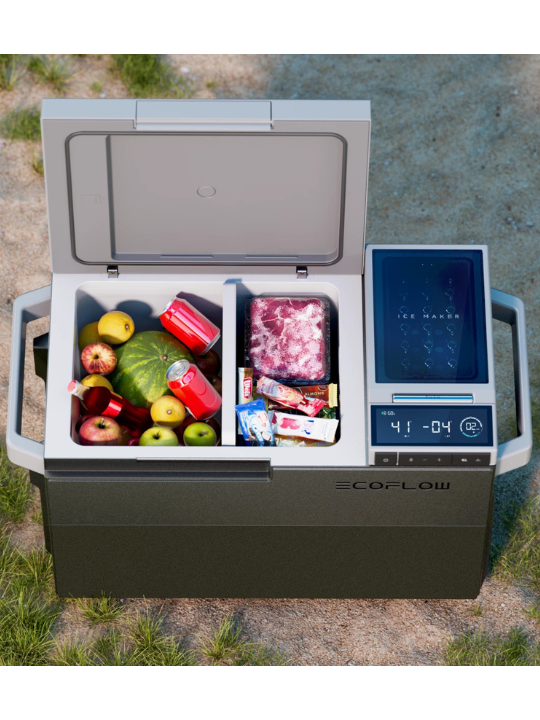 The EcoFlow 3-in-1 Portable Fridge, Freezer and Ice Maker is a versatile cooling appliance engineered to deliver refrigeration and freezing in a single unit – ideal when you want flexibility to stock steaks, cheeses, soft drinks or frozen goods. It features a removable divider that allows you to separate the main compartment into two independently controlled zones. Each zone can be set to refrigerate from about 50 °F (10 °C) down to -13 °F (-25 °C), allowing it to function as a fridge, freezer or both simultaneously.Although the original model emphasises outdoor, mobile or off-grid use (camping, vehicle, boat, etc), it can equally serve as a compact, high-flexibility cooling solution in home or small business scenarios — especially in markets like Tanzania where power supply may be inconsistent or where dual-zone flexibility is a premium.
