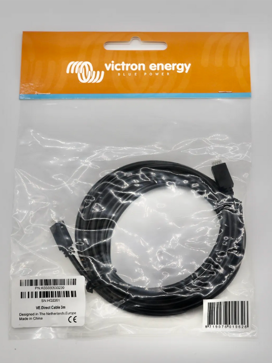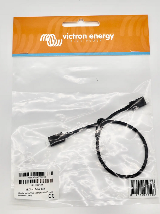 Victron Direct Cables are specialized communication cables designed by Victron Energy to enable reliable data connectivity within off-grid solar and battery monitoring systems. These cables connect devices equipped with a VE.Direct port — such as BMV-70x battery monitors, low-power MPPT solar charge controllers, and the Color Control GX (CCGX) — to one another or to a monitoring interface. They are critical components in ensuring that system data (voltage, current, power, state-of-charge, etc.) can be communicated for monitoring and control.