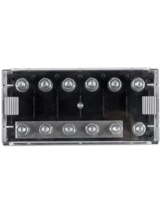 The Victron Energy Fuse Holder 6-way for MEGA-fuse is a compact, high-current DC fuse distribution solution designed for reliable power protection in demanding energy systems. Built to Victron’s well-known quality standards, this fuse holder accommodates six MEGA fuses—five connected to a common busbar and one independent fuse—making it ideal for organized, safe DC power distribution.