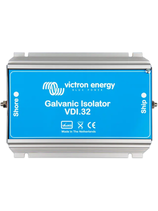 The Victron Energy Galvanic Isolator VDI series (VDI-16, VDI-32 and VDI-64) is a critical marine and shore-power protection device designed to prevent electrolytic (galvanic) corrosion in boats and marine installations. It safeguards underwater metal components such as hulls, propellers, shafts and rudders by blocking harmful low-voltage DC currents that can enter through the shore power earth connection.