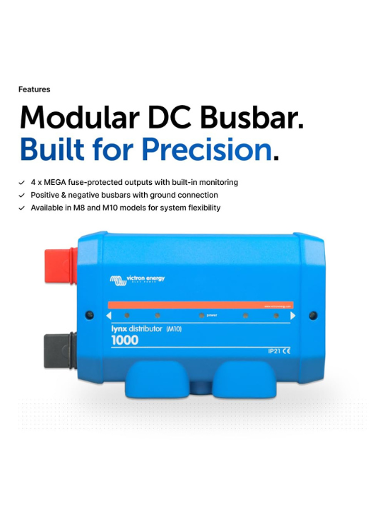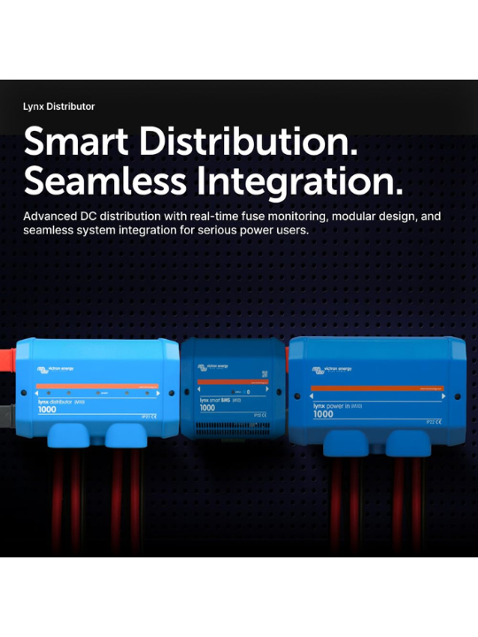 - Modular DC Busbar Design : Integrates seamlessly with other Lynx system components, allowing clean, expandable, and professional DC installations.