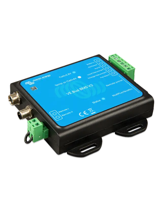 The Victron Energy VE.Bus BMS / VE.Bus BMS V2 is a robust and intelligent Battery Management System (BMS) designed specifically for Victron Lithium Battery Smart 12.8V and 25.6V (LiFePO₄ / LFP) batteries. It provides advanced battery protection, system safety, and seamless communication with Victron VE.Bus-enabled inverters and inverter/chargers.